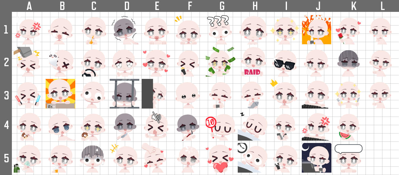 | Static Emotes (1000x1000px PNG with transparent background) | 5 (minimum buy: 9) |