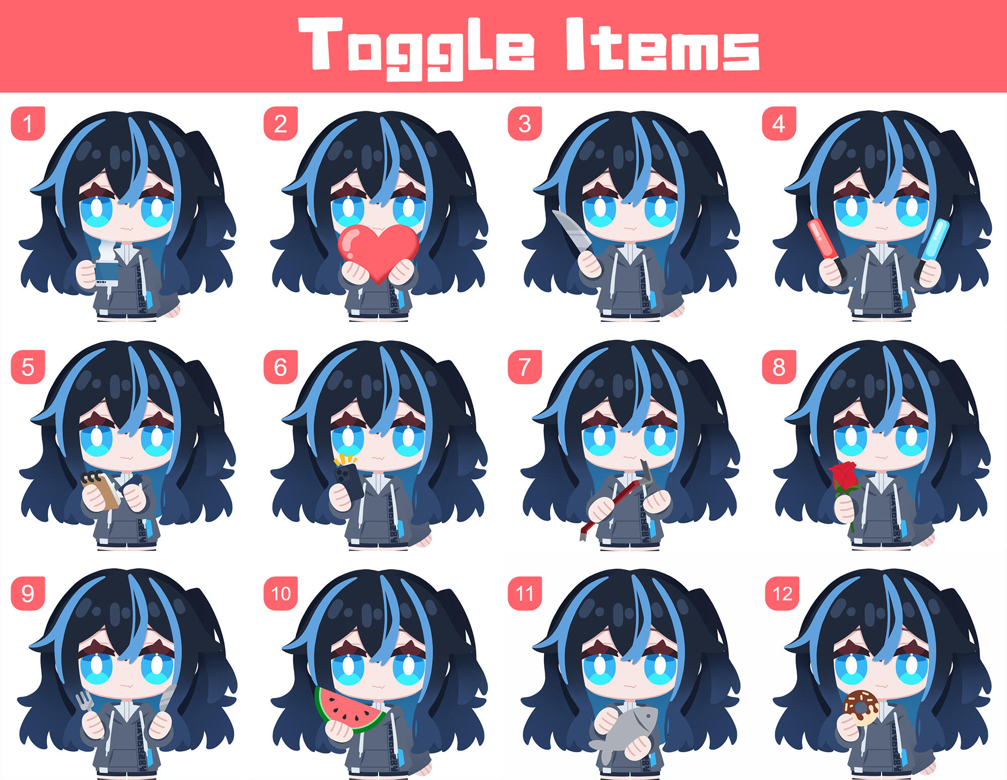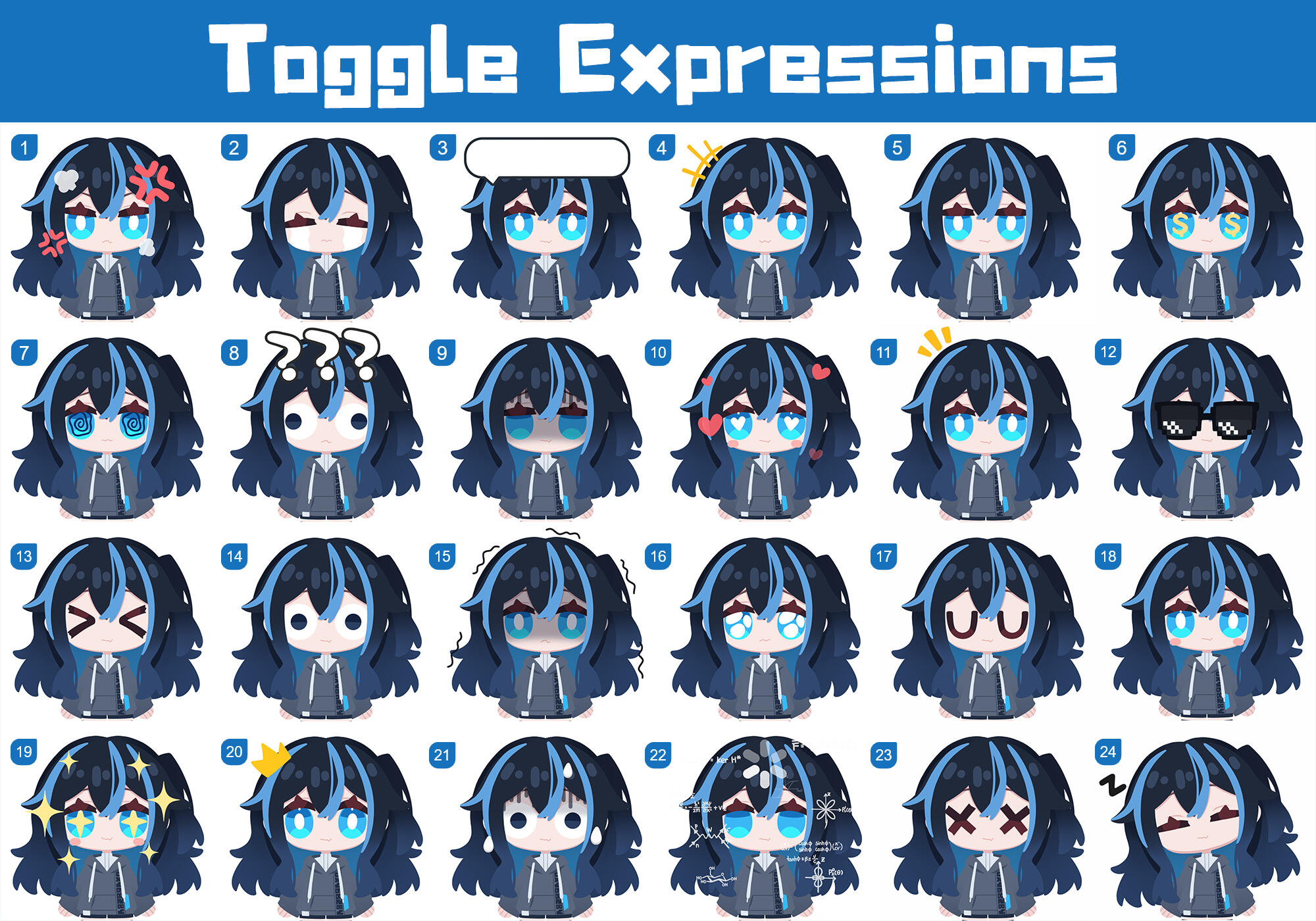 Includes: Ready-to-rig Live2D art. Assets for the 24 template toggle expressions.